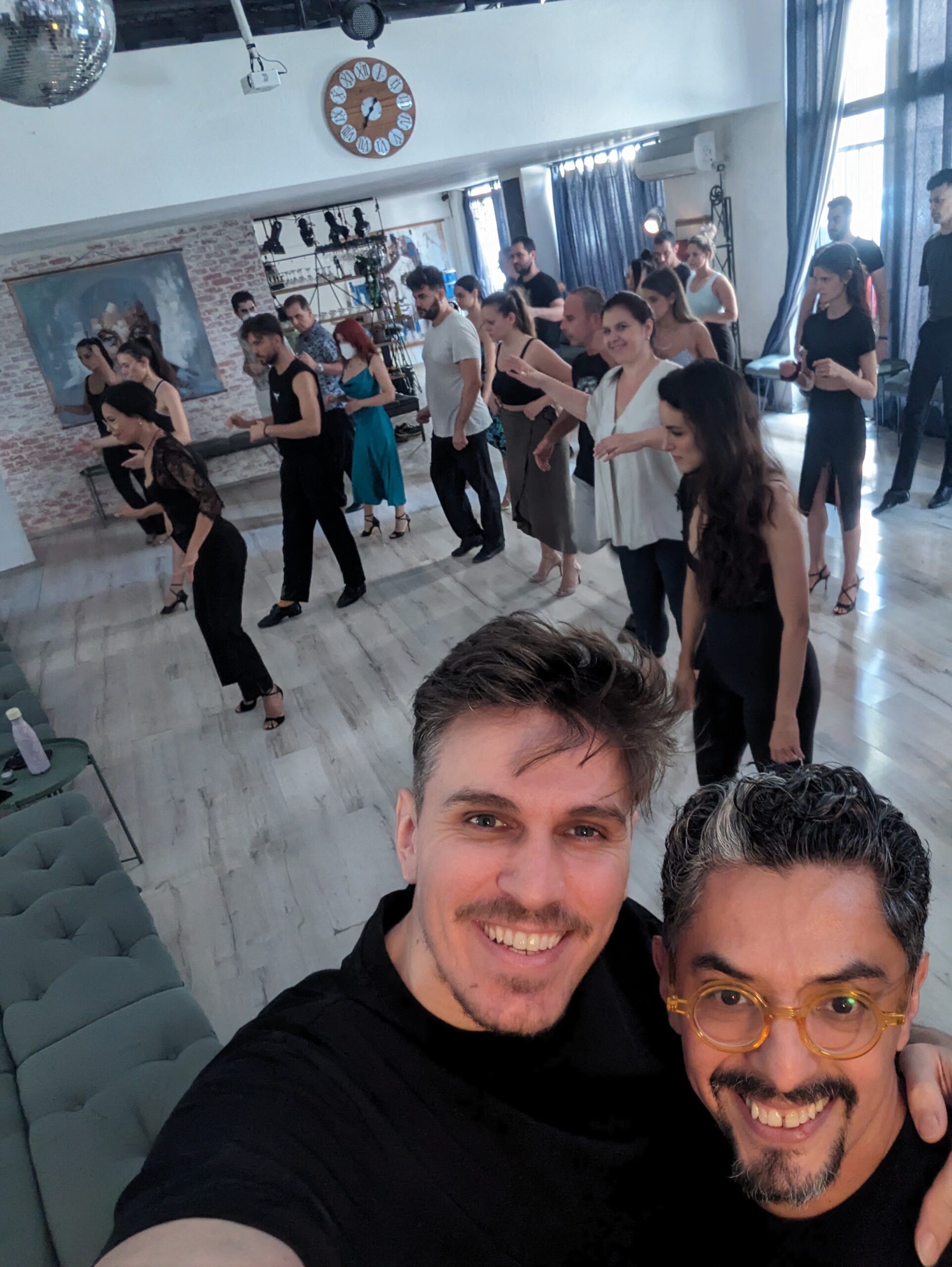Πριν λίγες μέρες είχαμε τη χαρά και την τιμή να φιλοξενήσουμε στη σχολή μας δύο υπέροχους καλλιτέχνες, τον David Samaniego και τη Rocío Aragón. Με το μοναδικό τους στυλ και την αφοσίωσή τους στο τάνγκο, μας χάρισαν ένα εντυπωσιακό σόου και μια σειρά από σεμινάρια γεμάτα τεχνική, μουσικότητα και πάθος.